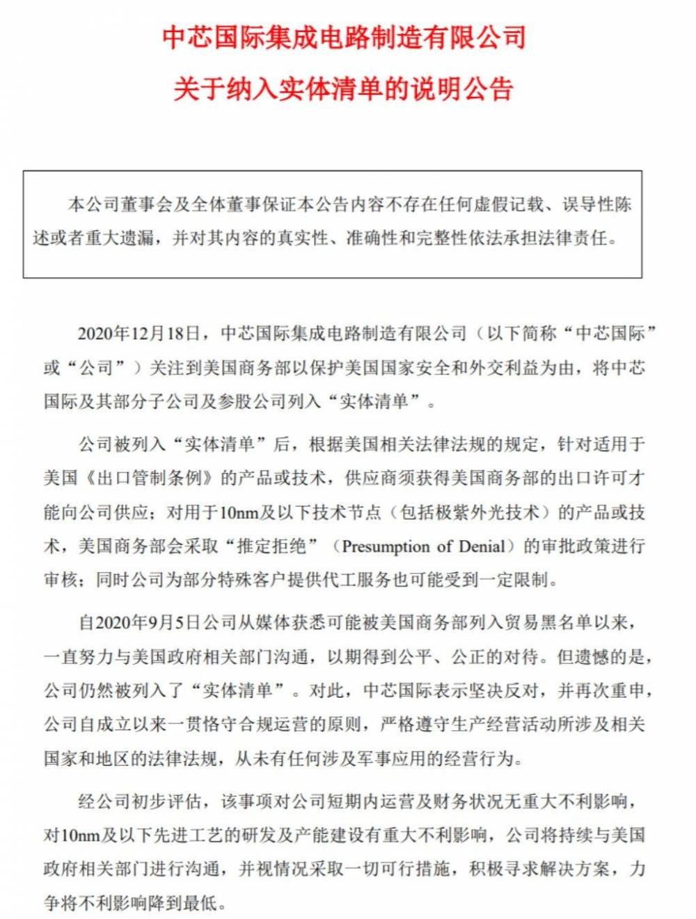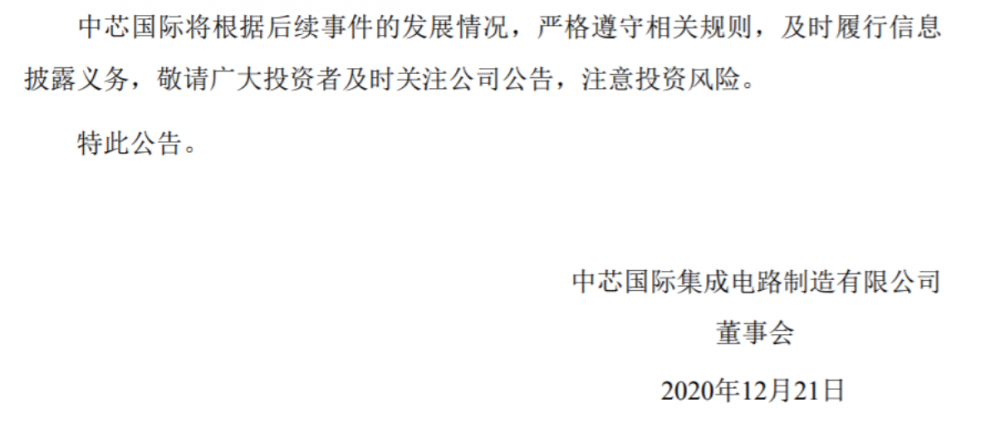 2020-12-21中芯国际回应被列入实体清单!